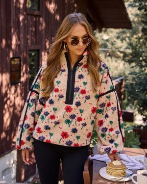 Pauleen Sherpa Floral Quarter Zip Sweatshirt