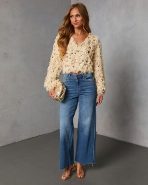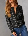 She walked in wearing the Ashwood Knit Tweed Cardigan. and suddenly the room had a storyline. Equal parts polished and playful. this cardigan brings the charm with a classic tweed-inspired knit. kissed with subtle metallic threading that twinkles just enough. Pearl-centered buttons add a touch of romance. while contrast ribbed trims and button-accented breast pockets give it that ??Oh. this old thing??? energy.