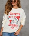 Whatever the occasion. the Cheers To The Naughty List Graphic Sweatshirt will have you feeling comfy. stylish. and ready to toast to all the fun (and mischief!) the season has to offer. Made from ultra-soft jersey fabric. this sweatshirt is perfect for staying cozy while making a statement. The fun front graphic detail adds a cheeky twist to your holiday wardrobe. making it ideal for everything from cookie baking marathons to festive movie nights.