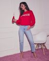 Cozy up in love with the Sweet Amour Graphic Sweatshirt. a dreamy blend of comfort and romance. Made from soft jersey fabric with a plush fleece lining. this sweatshirt wraps you in warmth while keeping your style effortlessly chic. The front screen print script adds a playful. flirty touch. while the stitched heart design at the back brings a sweet surprise that’s perfect for Valentine’s vibes.